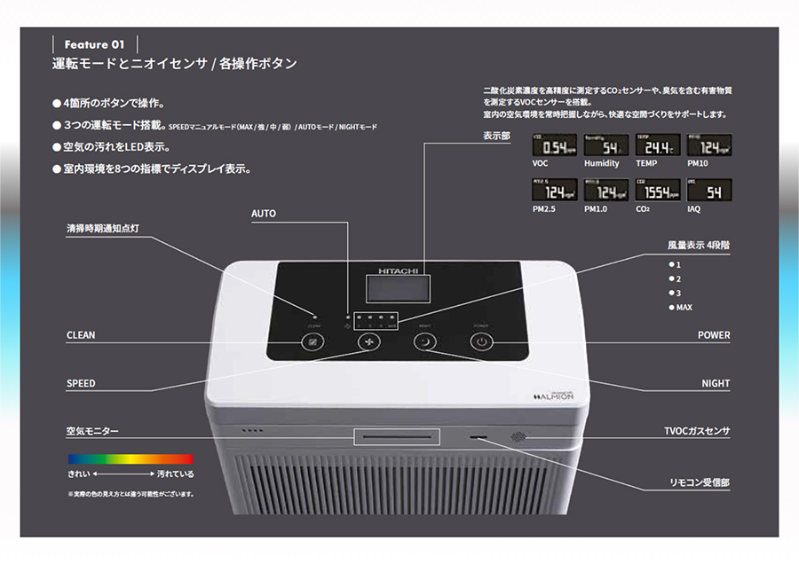 独自の開発技術(ALMION)により、99%以上の臭い、菌・ウイルスを強力分解。分解後は微量の水蒸気と二酸化炭素になり、清潔な空気が排出されます。セルフクリーニング効果による内部の自動洗浄で、消耗品のHEPAフィルターが不要、交換の手間とコスト削減になります。