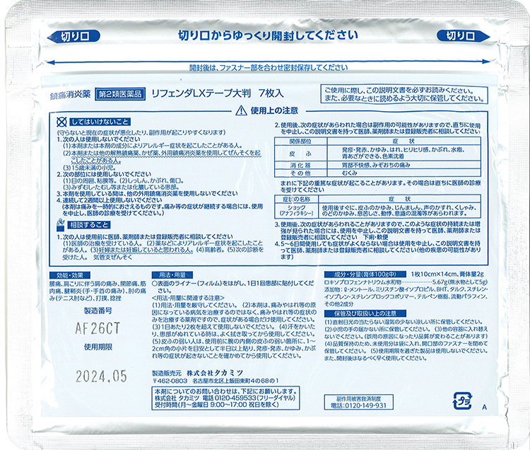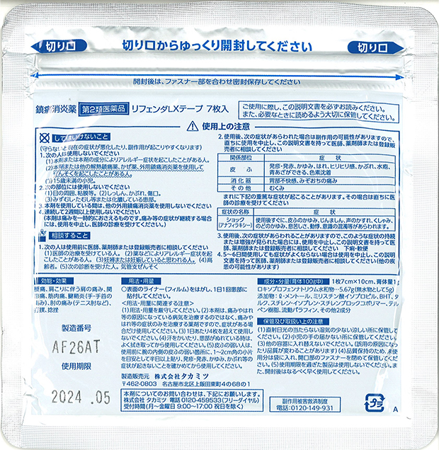 リフェンダLXテープ レギュラー1袋/¥500(税込)