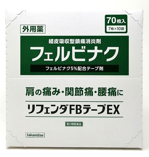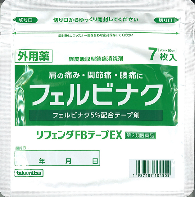有効成分フェルビナクに2成分を追加、関節にもぴったりフィットする、たて・よこ伸縮自在のテープ剤。