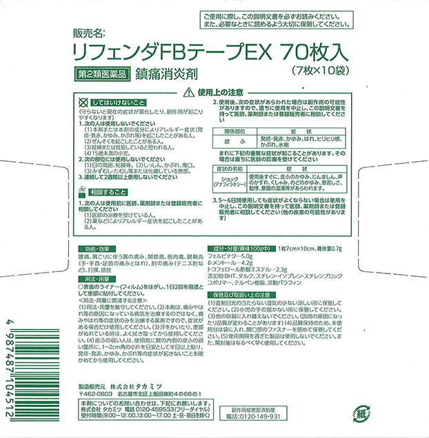 1箱(7枚×10袋入)/¥4,000(税込)【第2類医薬品】鎮痛消炎テープ剤