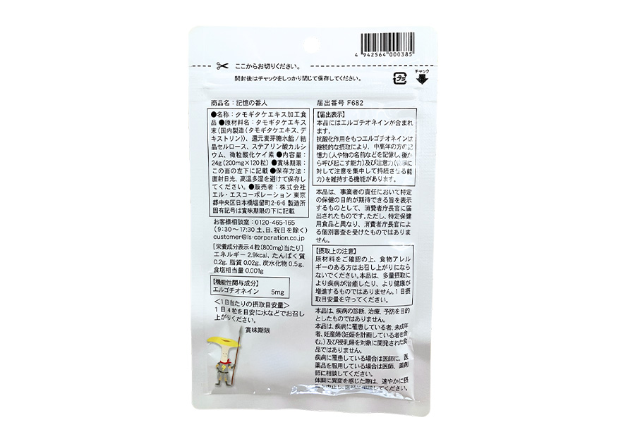 記憶の番人1袋120粒(1日あたりの目安4粒)/¥4,980(税込)